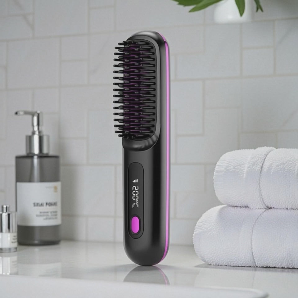 La brosse lissante sans fil NOSOLAR allie technologie avancée et design élégant pour lisser vos cheveux en quelques minutes, sans câble, sans contrainte.